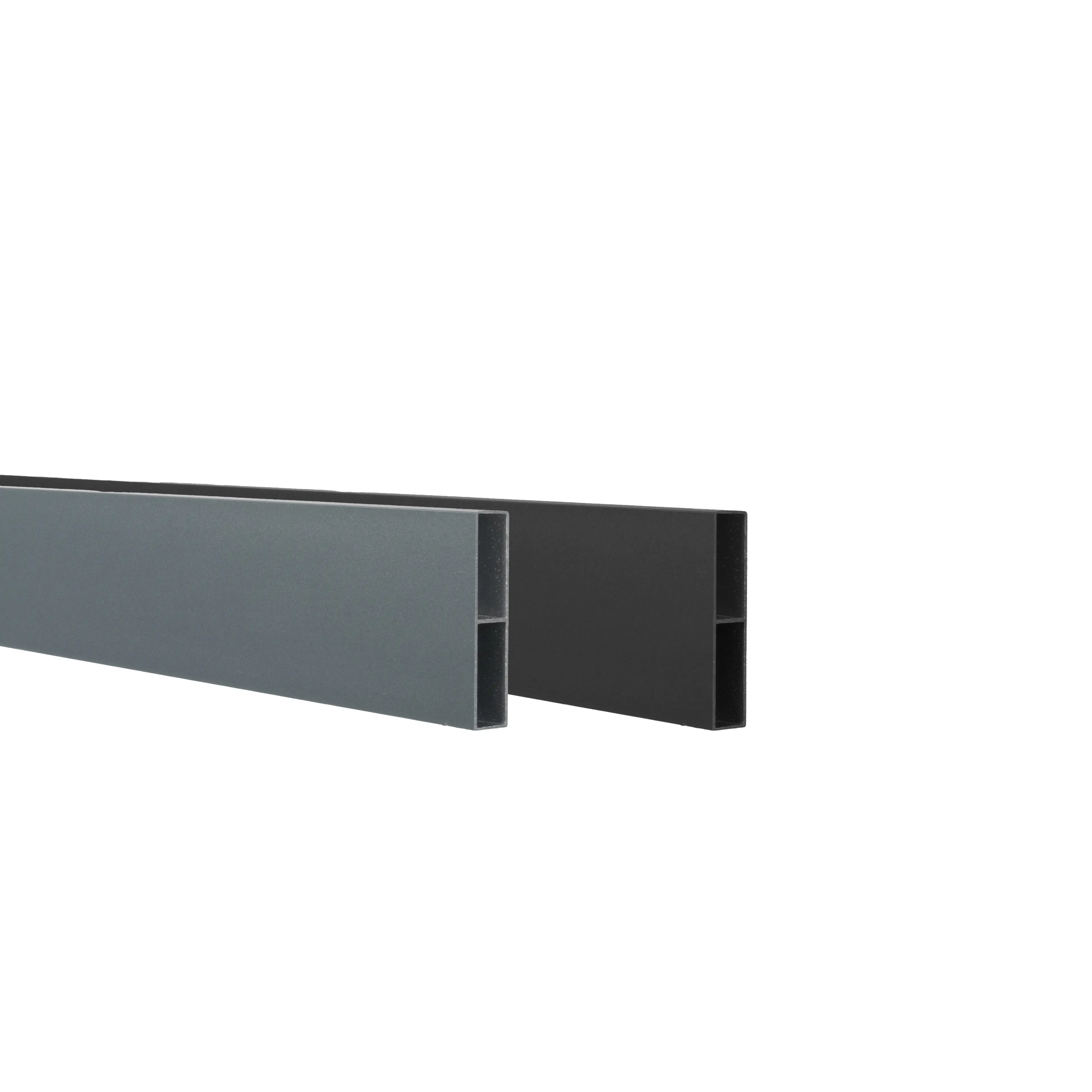 The OPEN 100mm aluminium slat is rectangular in cross-section. The spacing between OPEN slats is ensured by stackable 15mm spacers. OPEN slats are available in anthracite grey and black with Qualicoat® and Qualimarine®-certified powder coating.