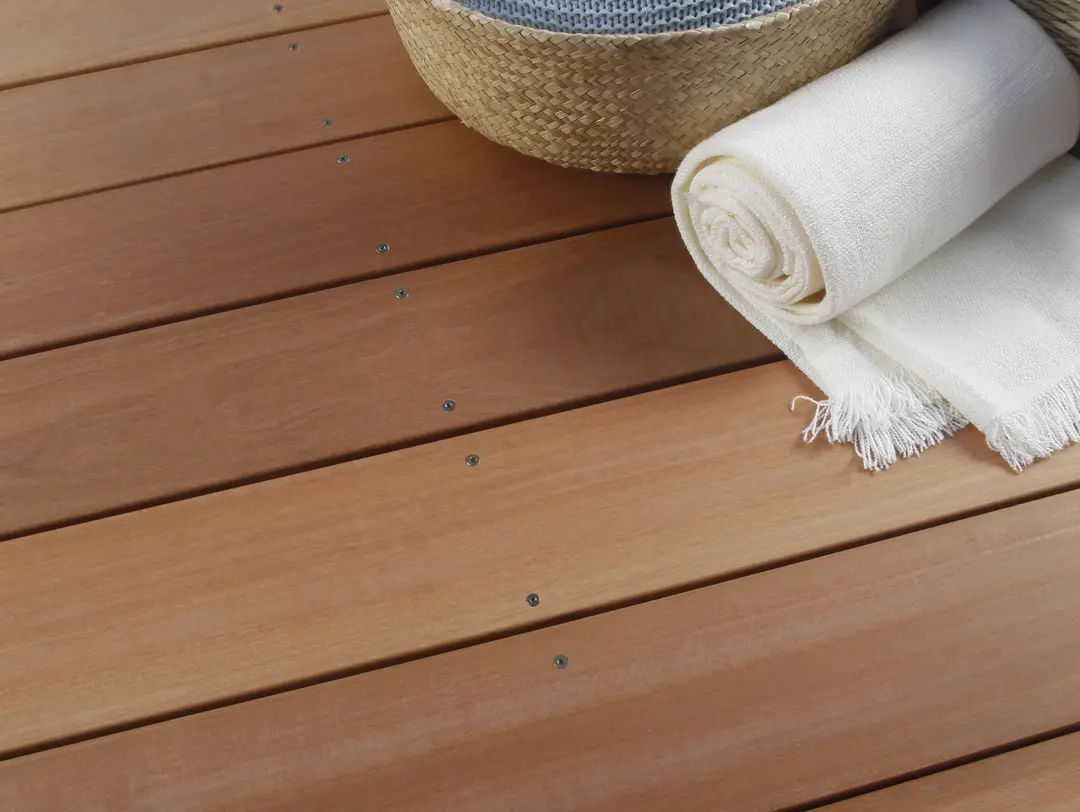 Felixwood Kapur comes from the tropical lowland forests of Indonesia. Well-formed buttresses support their straight, cylindrical bole and the trunk is free of branches up to 30 m, which explains their homogeneity. Renowned for its durability, Kapur is a hardwood used for outdoor construction. It is used as a substitute for Bangkirai. Kapur is initially reddish-brown to orange in colour, and darkens rapidly when exposed to UV light.