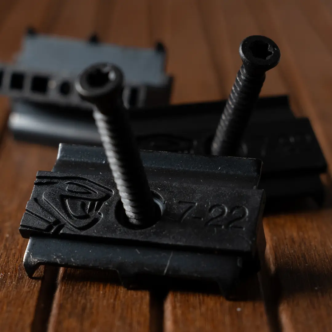 Hybrid-Clip aus zwei Materialien: asymmetrische Edelstahl-Lamelle und Wabenkörper aus hochdichtem Polypropylen. Vormontiert mit selbstbohrender Hochleistungs-Edelstahlschraube C1. Geeignet für Bambus- und thermisch modifizierte Holzbeläge. Universell einsetzbar, kompatibel mit wendbaren Dielen von 18–24 mm Stärke und bis 150 mm Breite. Für die Befestigung auf Holz- oder Aluminium-Unterkonstruktionen.Unterstützt die kontrollierte Aufnahme von Quell- und Schwindbewegungen. Schnelle Montage; Austausch einzelner Dielen möglich.