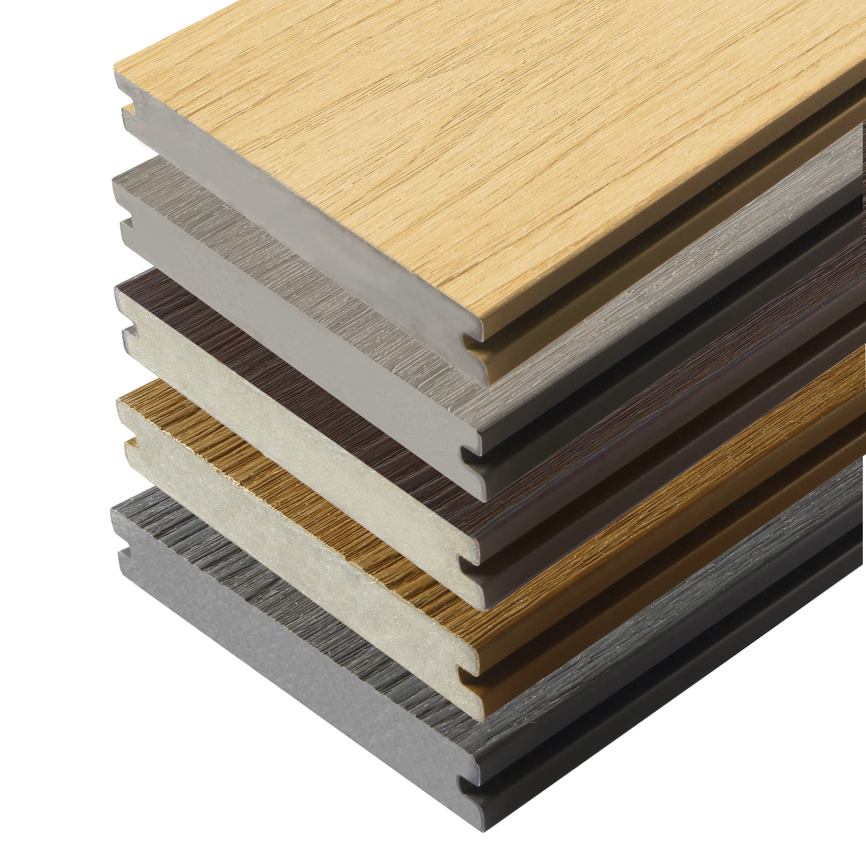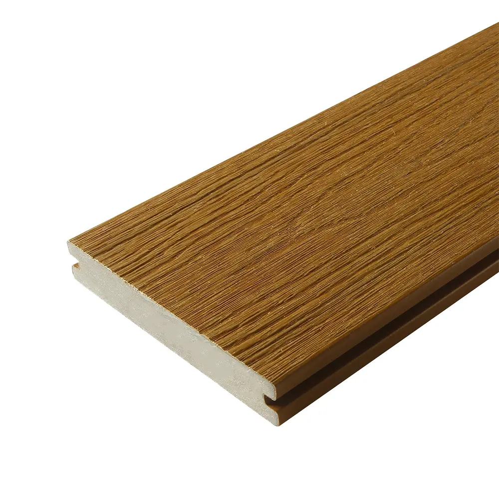 Die Fiberdeck© Premium Verbunddielen haben einen massiven Kern für eine höhere Haltbarkeit. Sie sind mit 2 nützlichen Oberflächen erhältlich. Eine ist glatt für einen zeitgenössischen Look, die andere zeigt eine Holzmaserung. Beide Seiten sind gebürstet, um eine matte Oberfläche zu erhalten. Die 360°-Co-Extrusionsschutzschicht schützt das Brett effektiv vor Stößen und Flecken. Dadurch wird der Wartungsaufwand auf ein Minimum reduziert. Die Installation erfolgt mit Hilfe von abnehmbaren Cobra© 8-18 Clips.