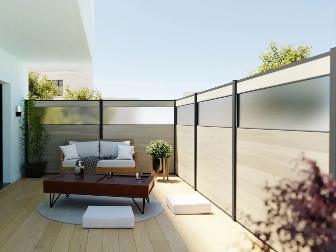 The 450mm-high frosted glass decor replaces three fence boards. It allows light to pass through without betraying the privacy of the protected space.