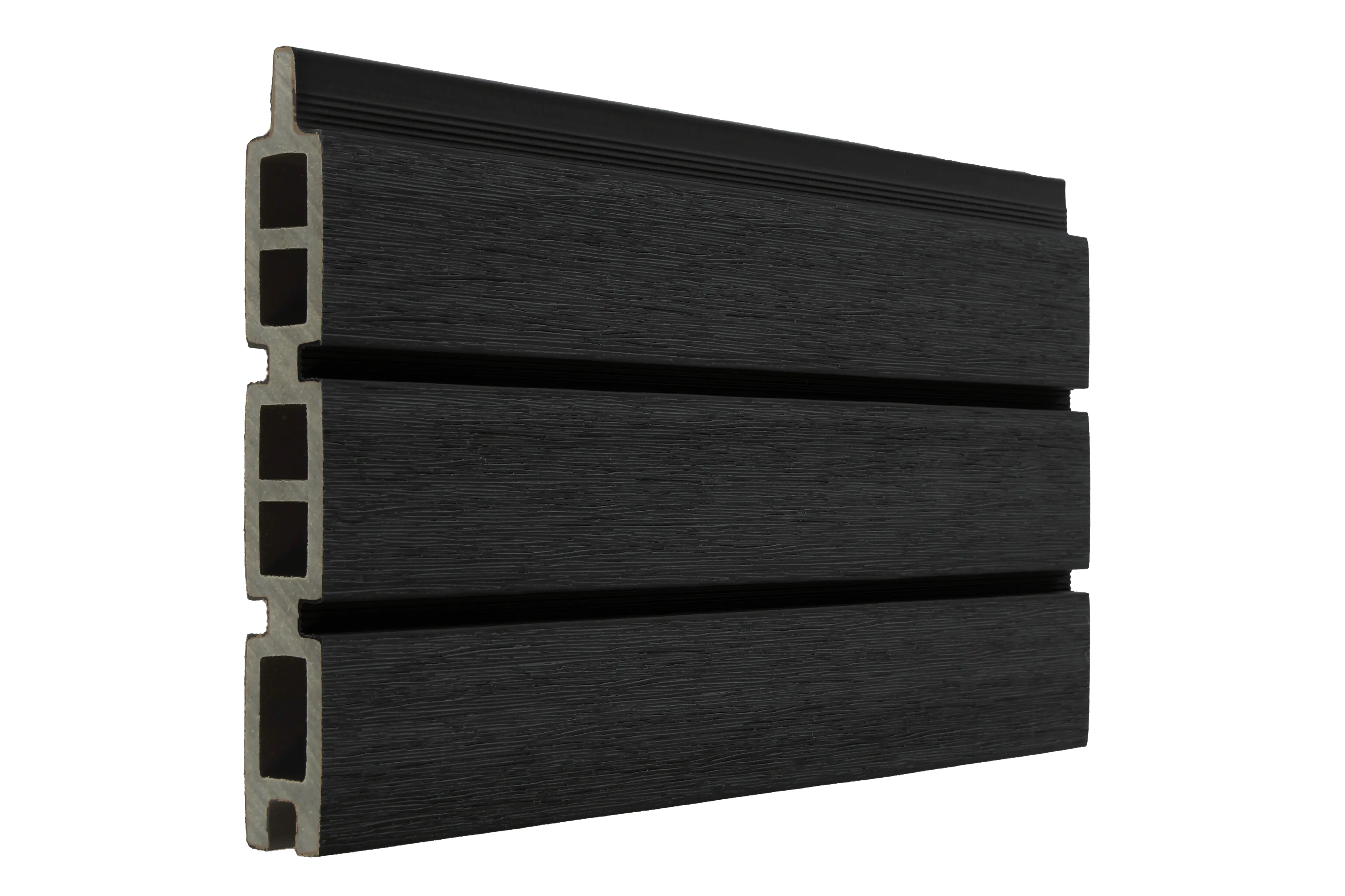 MODERN interlocking boards are made of co-extruded wood composite. They are UV-resistant and come with a 20-year guarantee against staining and discoloration. Their grooves give them a false clerestory appearance. They are also resistant to insect and fungal attack. MODERN boards are available in three colors: Dark Grey, Teak and Cedar. They can be combined with OPALE boards and decors. We recommend fitting every fourth board with an 11x20mm aluminium reinforcement.