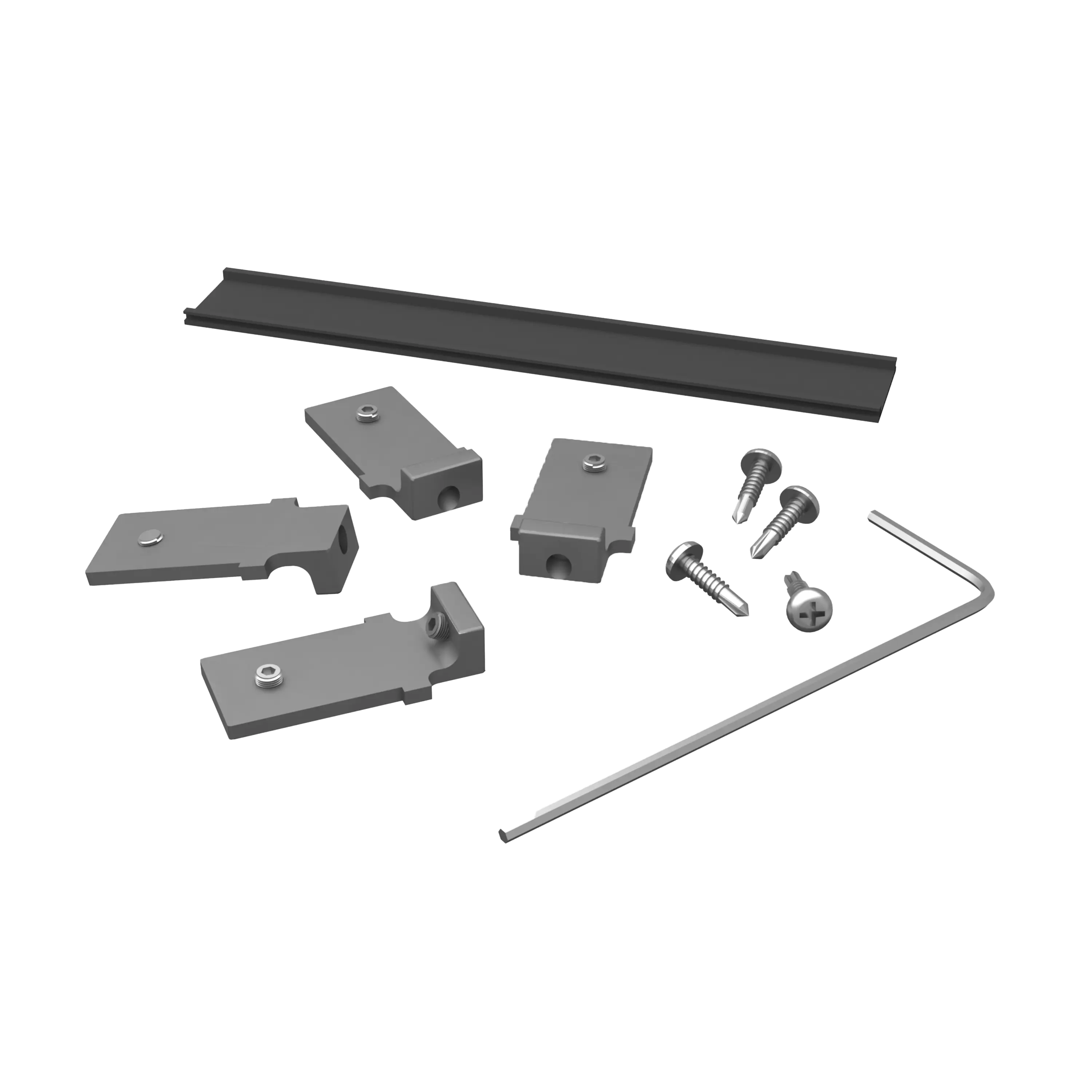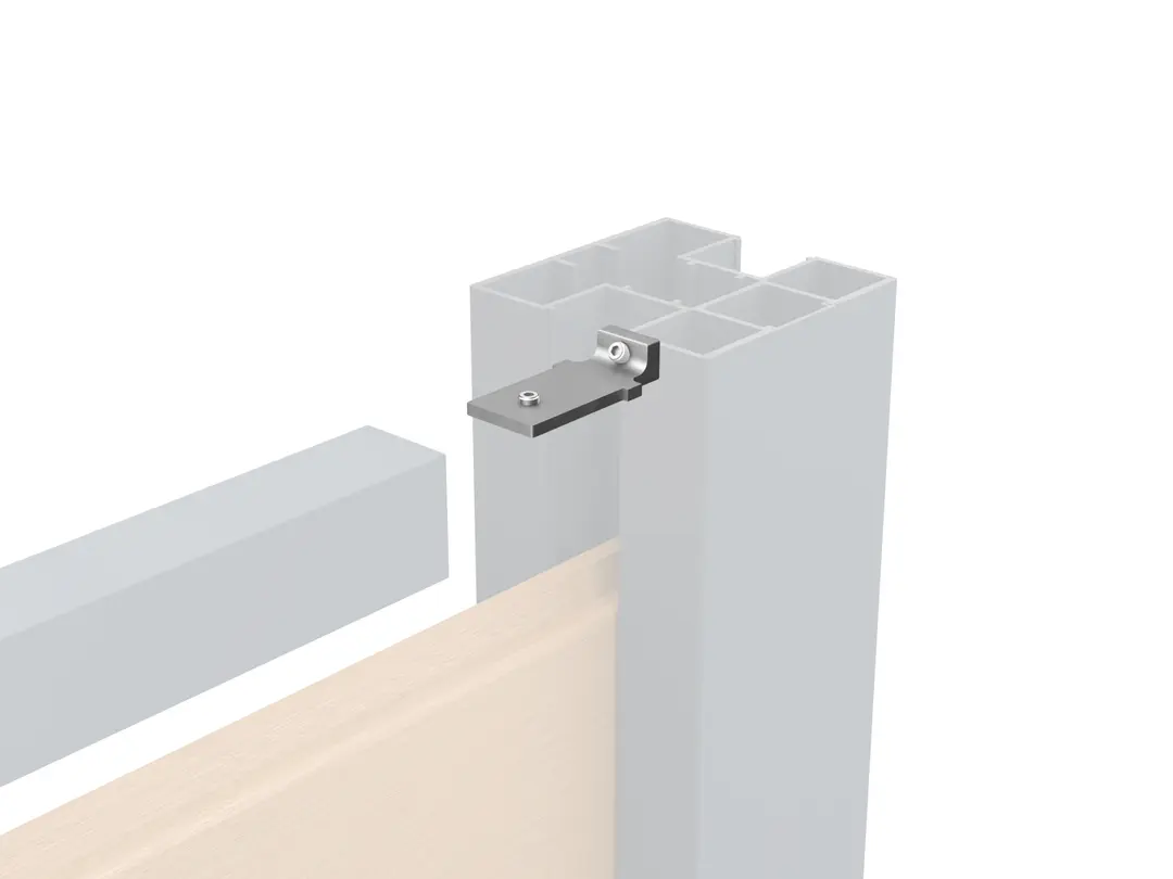 The connectors hold the rails to the posts. The kit contains 4 connectors, 8 pointed and 4 self-drilling screws, a 15cm finishing strip and an Allen key.