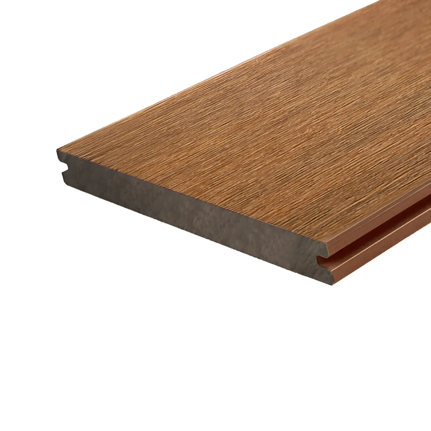 Fiberdeck© Brooklyn Premium composite decking boards have a solid core for greater durability. They are available with 2 useful faces. One is smooth for a contemporary look, the other one shows a wood grain. Both sides are brushed to give a matt surface. The 360° co-extruded protective layer effectively protects the board against knocks and stains. This reduces maintenance to a minimum. Installation is carried out using Cobra© 8-18 removable clips.