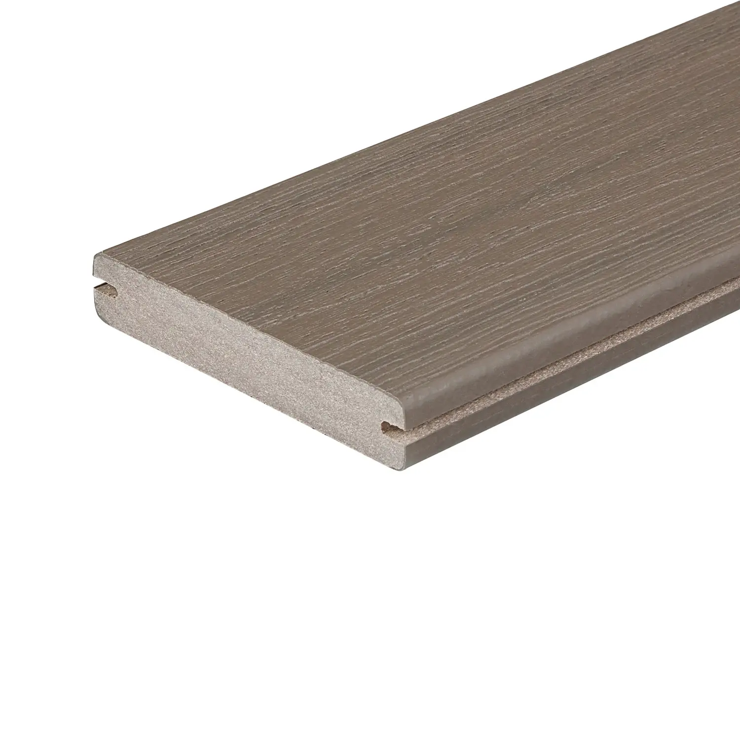 Fiberon© co-extruded composite decking using Permatech© technology. The protective layer covers the entire board. It protects the board against stains and discolouration. The 2 faces are identical. The board is solid and solid. It works like wood. The wood decor is printed in the mass, giving the board its character. The colours are multichromatic. Maintenance is carried out with a broom and clear water. Cleaning is kept to a minimum. A few millimetres of extra length at the end of the board to be recut on delivery. Installation with Cobra Hybrid 8-18 or Cobra 24 clips.