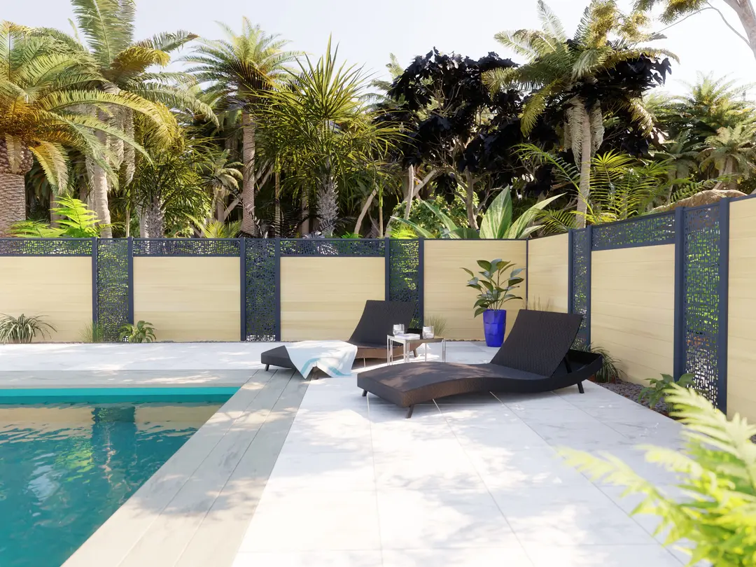 Le décor Crios se décline en version verticale, pour laisser la touche très graphique et géométrique s'exprimer sur une plus large surface. Les profilés inclus avec le décor permettent d'avoir l'écartement parfait entre les poteaux durant le montage.