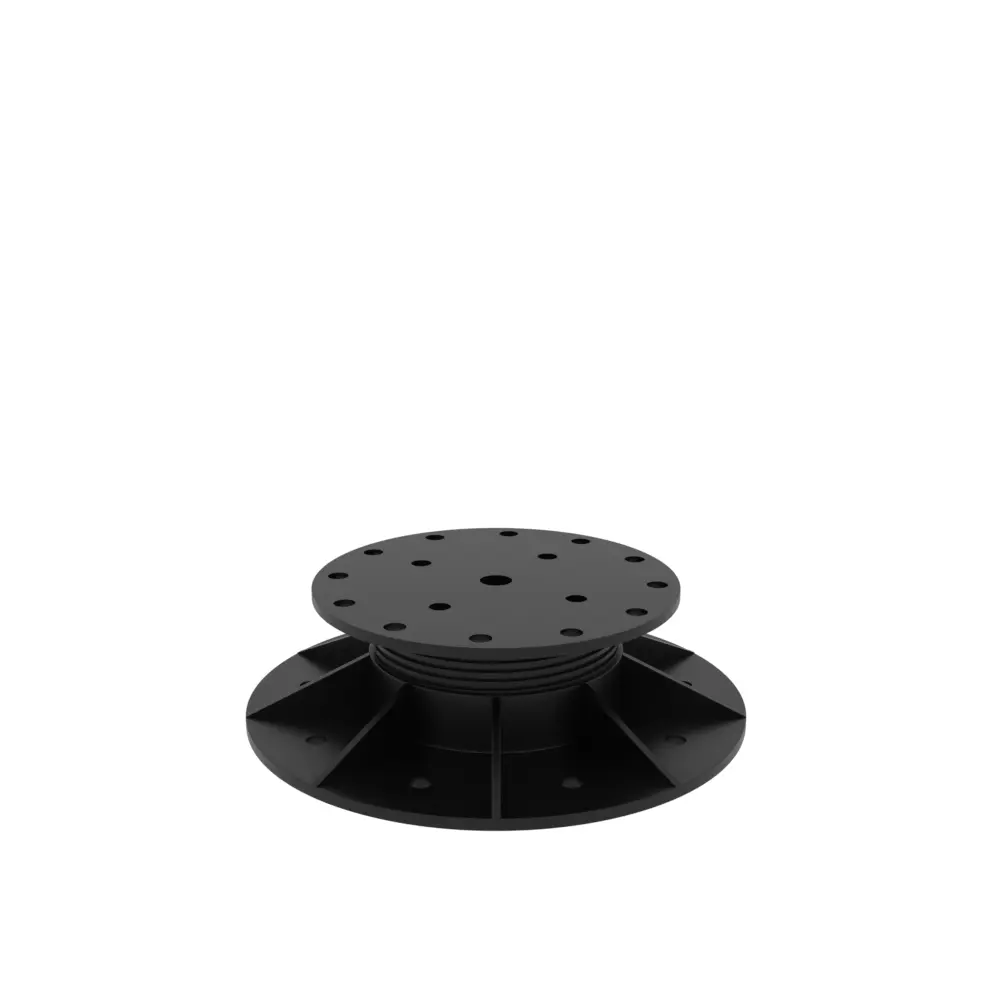 Verstelbare vloerdrager, specifiek ontworpen voor de installatie van onderbalken voor WPC of houten terrassen en ook voor bestrating. Geschikt voor vlakke en stabiele vloeren of waterdichte dakterrassen. De vloerdragers hebben een brede basis van 200 mm en zijn in 5 maten beschikbaar. Van hoogtes tussen 26 mm tot 260 mm en tot 500 mm met de stapelbare verlengstuk van 60 mm (maximaal 4). Elke vloerdrager kan een belasting van 1200 kg dragen. Gemaakt van gerecycled plastic. Bestand tegen vorst (-40°) en hoge temperaturen (+60°) zonder vervorming. Voldoen aan de DTU 51-4 en 43-1 normen.