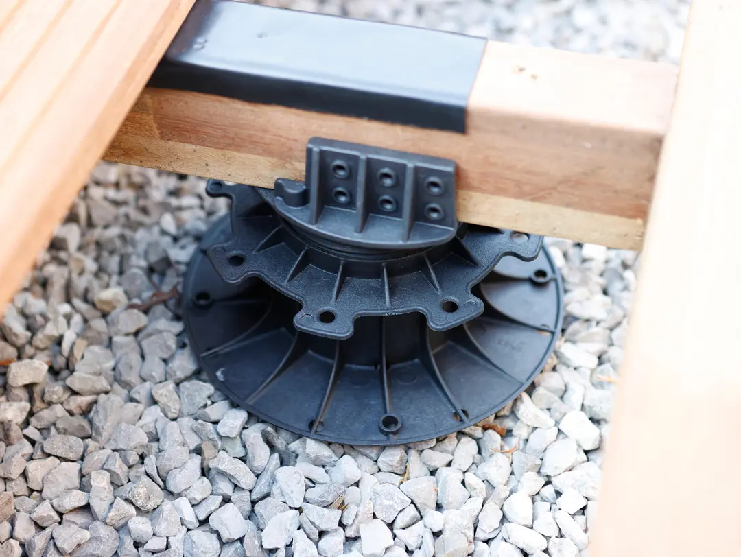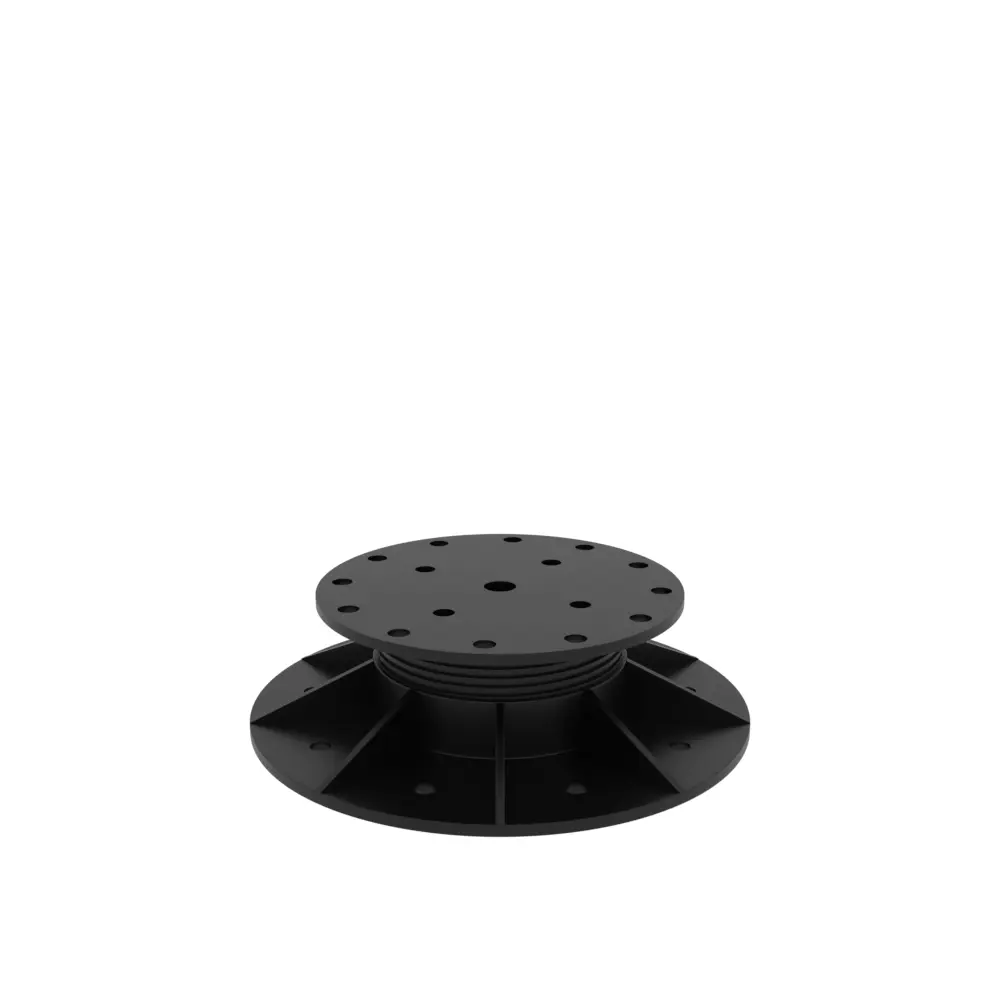 Verstelbare vloerdrager, specifiek ontworpen voor de installatie van onderbalken voor WPC of houten terrassen en ook voor bestrating. Geschikt voor vlakke en stabiele vloeren of waterdichte dakterrassen. De vloerdragers hebben een brede basis van 200 mm en zijn in 5 maten beschikbaar. Van hoogtes tussen 26 mm tot 260 mm en tot 500 mm met de stapelbare verlengstuk van 60 mm (maximaal 4). Elke vloerdrager kan een belasting van 1200 kg dragen. Gemaakt van gerecycled plastic. Bestand tegen vorst (-40°) en hoge temperaturen (+60°) zonder vervorming. Voldoen aan de DTU 51-4 en 43-1 normen.