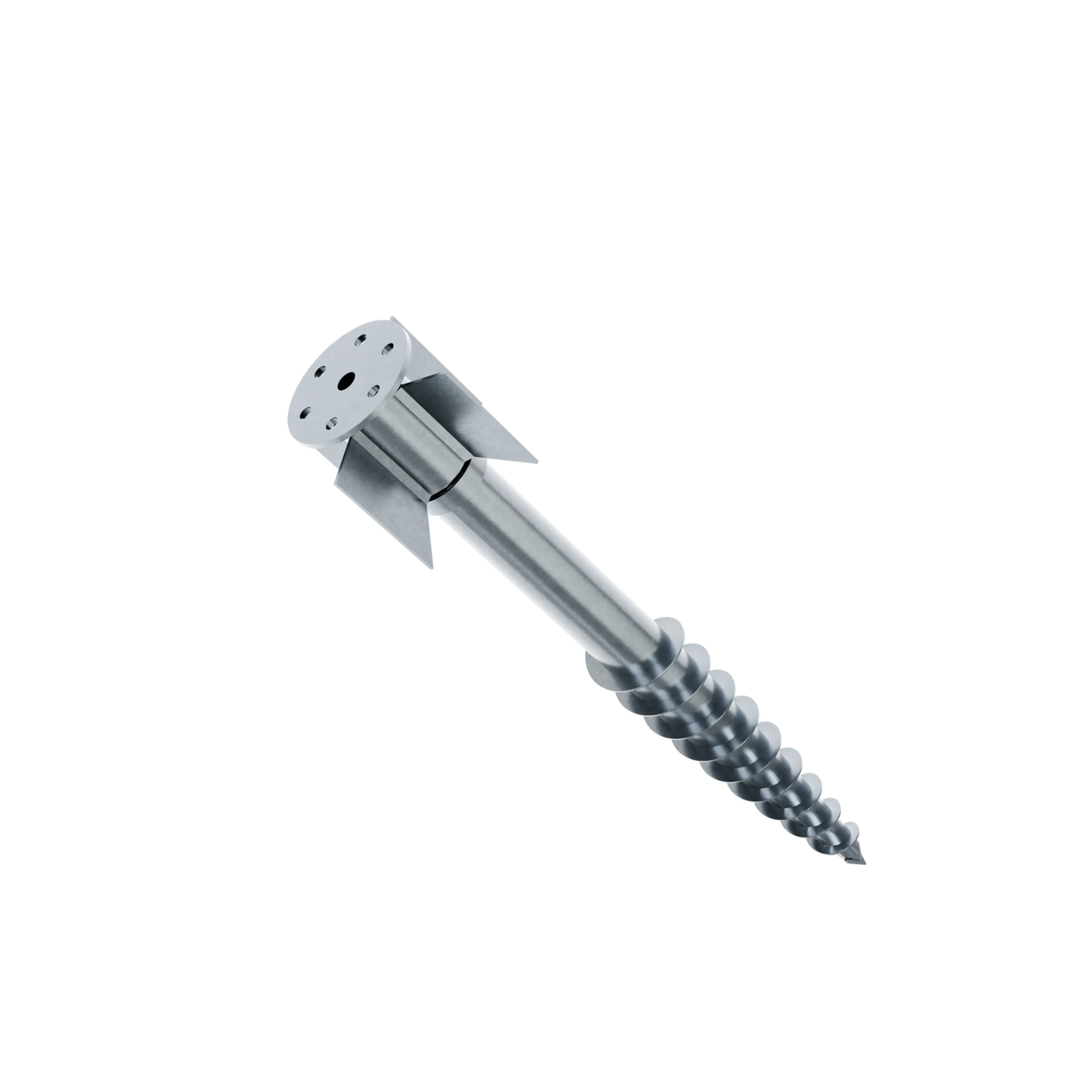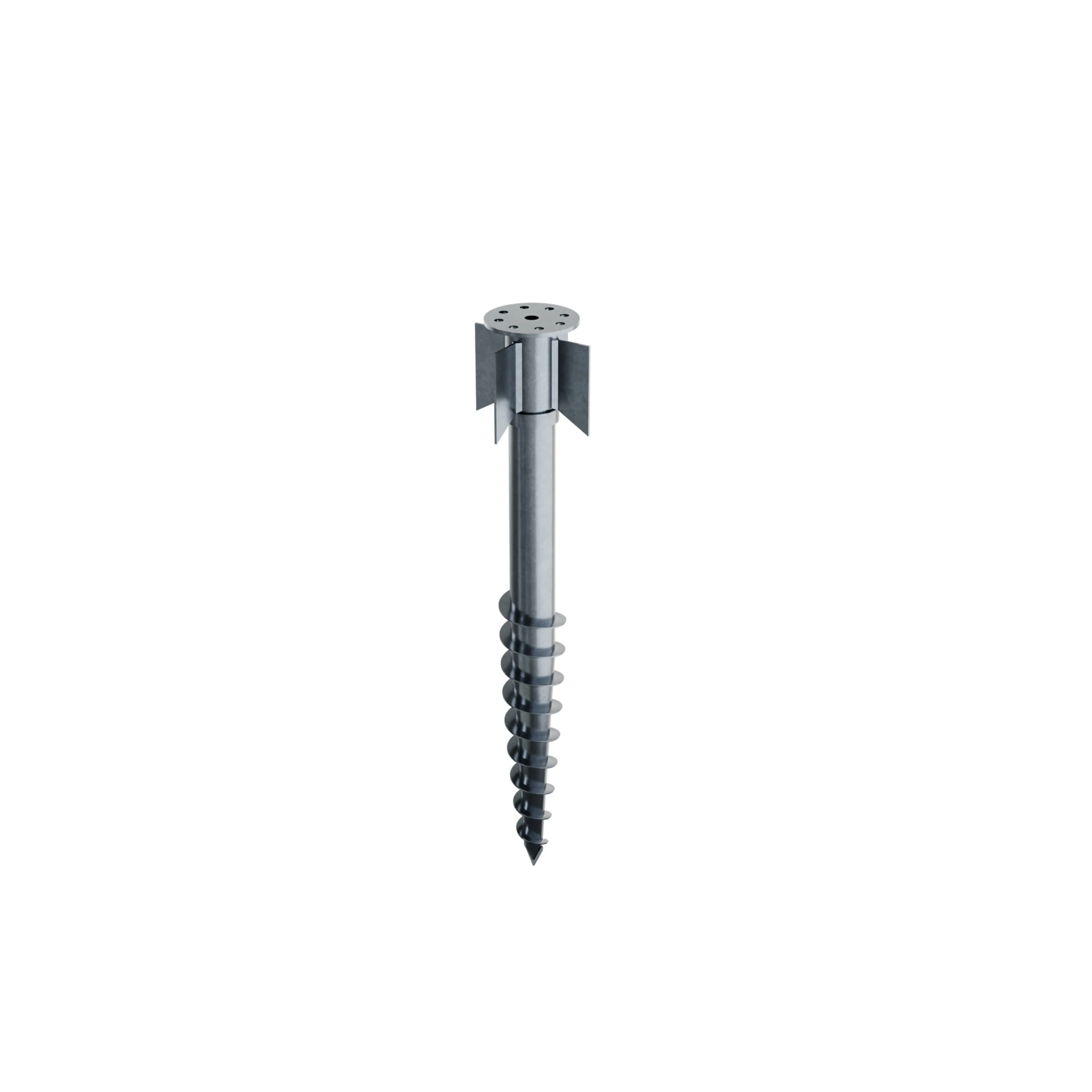 Verzinkte stalen funderingsschroef met een ankerkroon voor het plaatsen van carport- of overkappingspalen in de grond. Moet minimaal 70 cm diep worden ingedreven. Niet geschikt voor hekken. Diameter van 60 mm. Wordt geleverd zonder bevestigingskop.